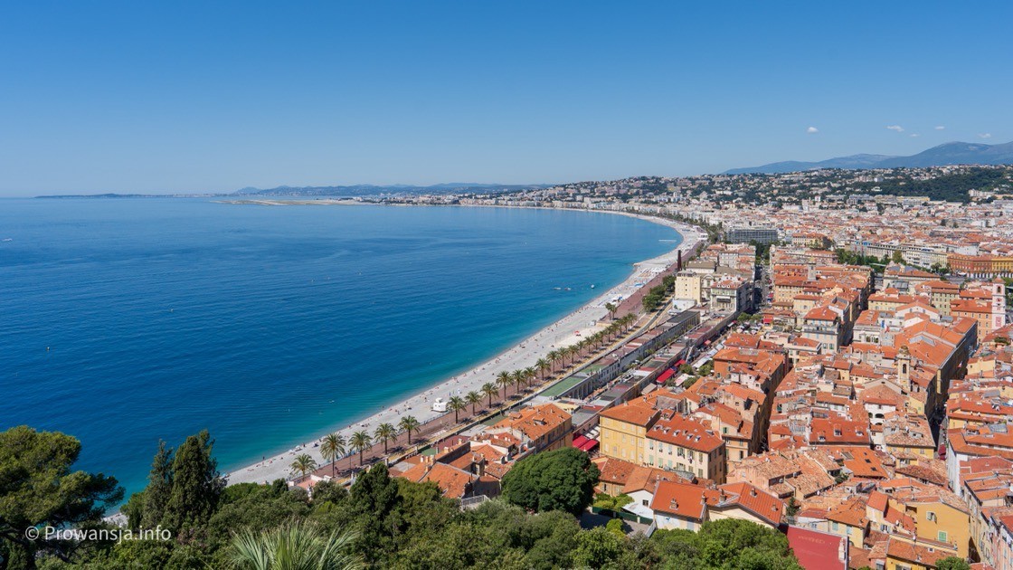 (…) Promenada Anglików, o długości 7 km, ciągnie się wzdłuż wybrzeża. Miasto posiada porty handlowe, pasażerskie i rybackie, a także Międzynarodowy Port Lotniczy Nicea-Lazurowe Wybrzeże (trzeci co do wielkości we Francji pod względem liczby pasażerów). Jest drugim co do wielkości francuskim miastem nad Morzem Śródziemnym”.