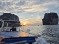 W czasie naszego rejsu, od szóstej oczekiwaliśmy atrakcji wizualnych związanych z tutejszym zachodem słońca. Krótko po osiemnastej pojawiły się chmury i zmieniły się warunki… Może zdjęcia dzięki temu są ciekawsze?