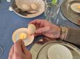 Po obiedzie z daniami wielkanocnym (nic dla wegetarian!), z winem z lokalnej winnicy (nic dla kierowców!), zabraliśmy się, pod okiem artystki, do malowania jajek w technice, która nazywa się batik albo pisanie jajek woskiem.