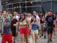 Na zdjęciach młodzi ludzie w pośpiechu udający się na teren festiwalu.