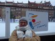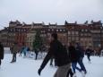 Na rynku Starego Miasta, wokół Syrenki, piękna ślizgawka, a na niej beztrosko bawią się dorośli i dzieci.
