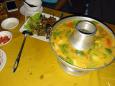 Na koniec dnia miała być kolacja w lokalnej restauracji. Mój przewodnik Sophea zabrał mnie do khmerskiej, nad rzeką, z bardzo, bardzo, głośną muzyką na poziomie disco kambo (moja nomenklatura) i z męczącym karaoke.