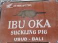 Na lunch poszliśmy do jednej z restauracji IBU OKA, która powinna być bardzo "lokalna", czyli tania, a okazała się typową pułapką turytyczną. W IBU OKA serwują tutejszy przysmak, czyli świńską rąbankę z pieczonego prosiaka, w różnych postaciach.