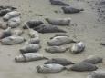 On a sunless day the Pacific looks especially dangerous and unfriendly. Only those big seals are lounging lazily on the beach. Nobody is bothering them. Sweet fatties.