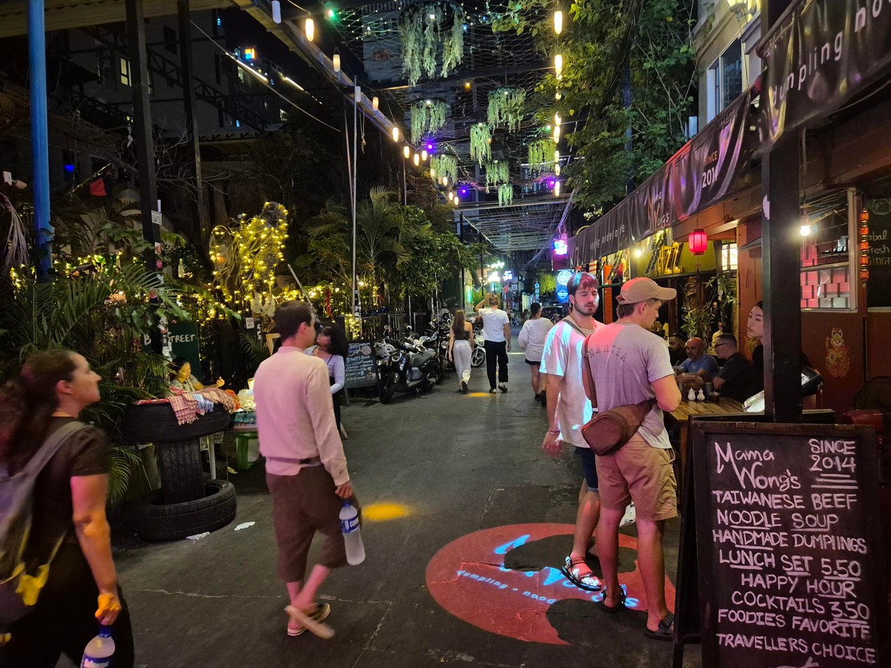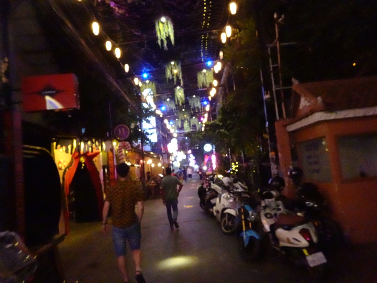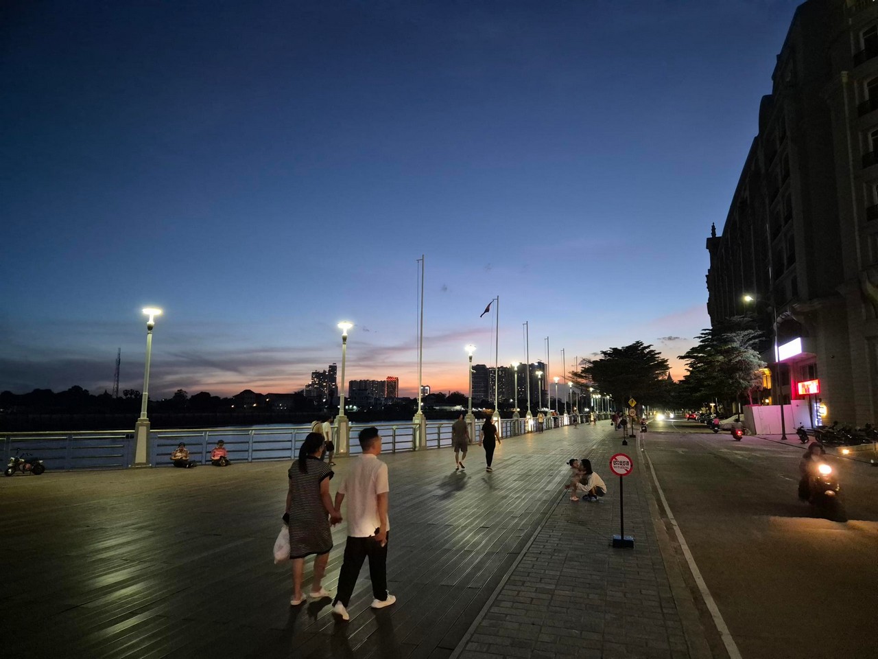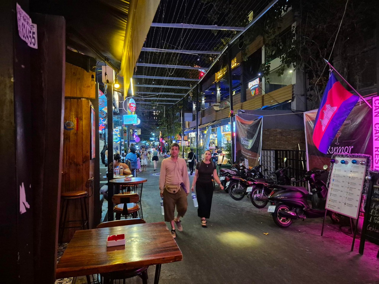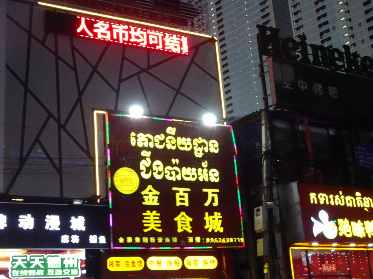 After this truly shocking view of the Chinese city, we returned to old Phnom Penh (it means Lady Penh's Hill), to a typical tourist street, for our last meal of the day.