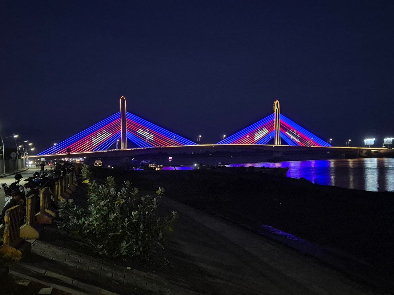 We are leaving the Diamnod Island* over the new bridge (look at the lighting and notice what it represents), impressed by the purpousful resemblance of the buildings to European architecture. The riverside avenue and its promenade are impressive in both appearance and purpose.