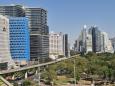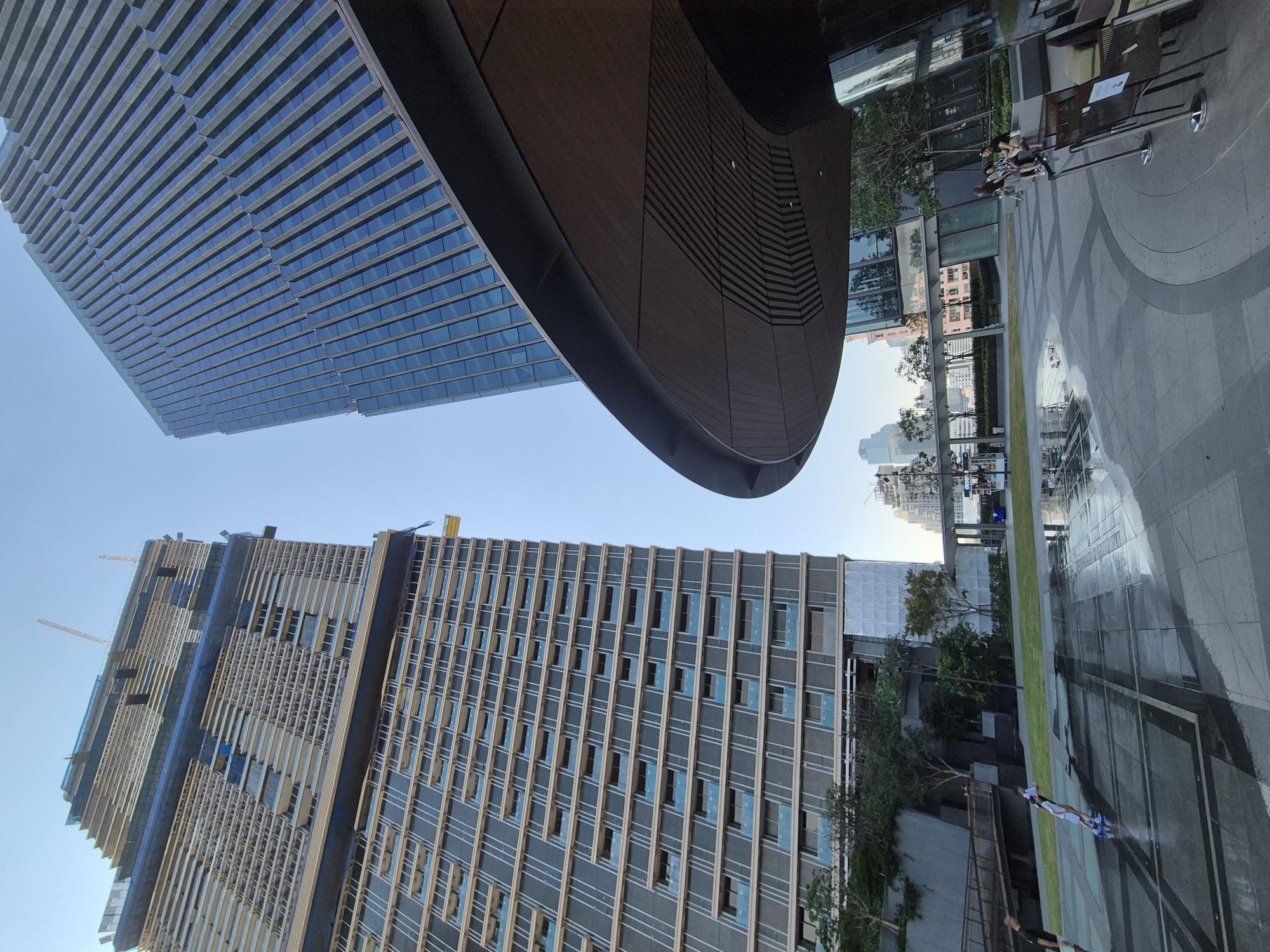 The complex consists of three skyscrapers: a new hotel, a residential tower, and an office tower, connected by an eight-story retail podium with a rooftop park.”