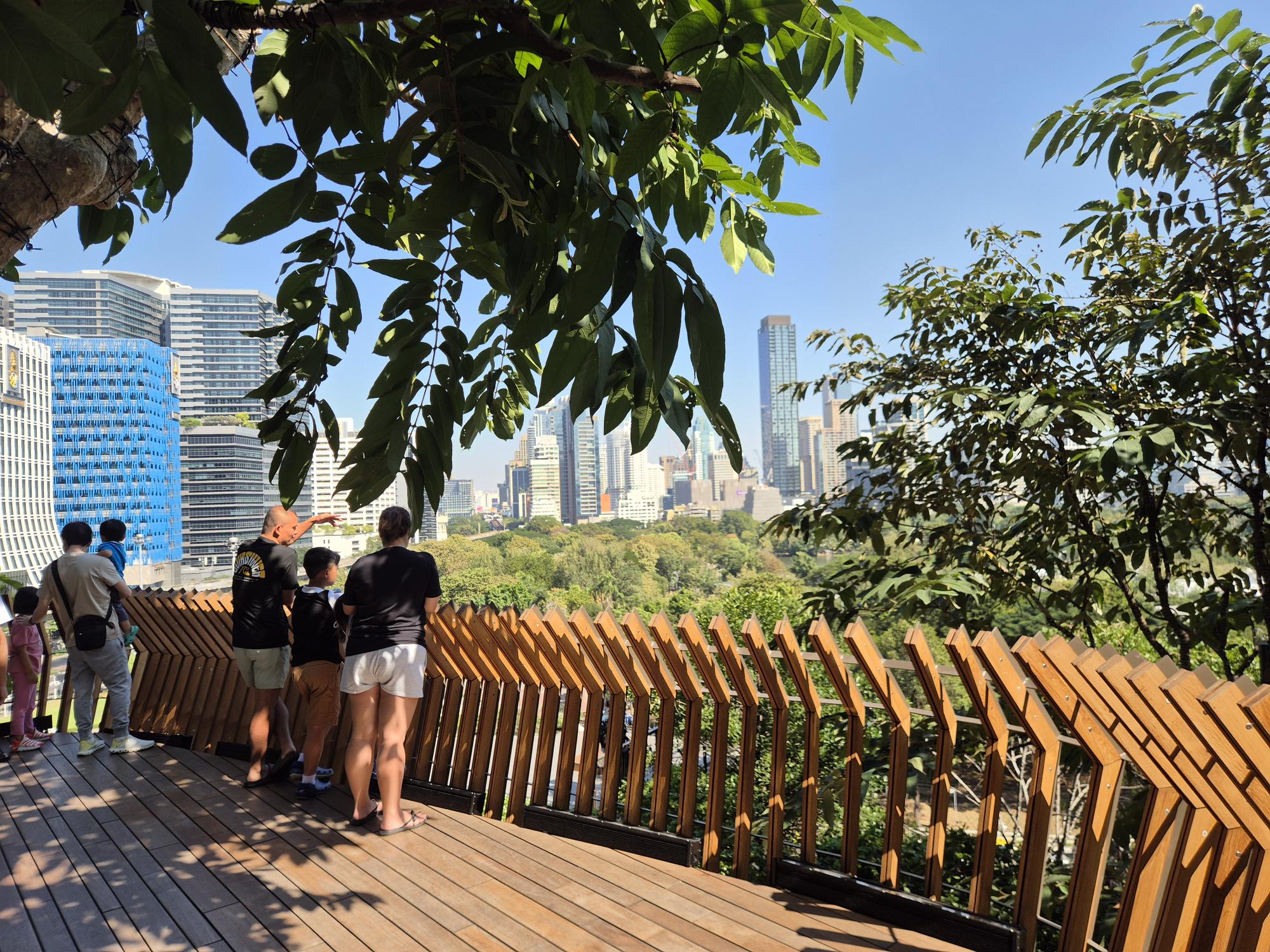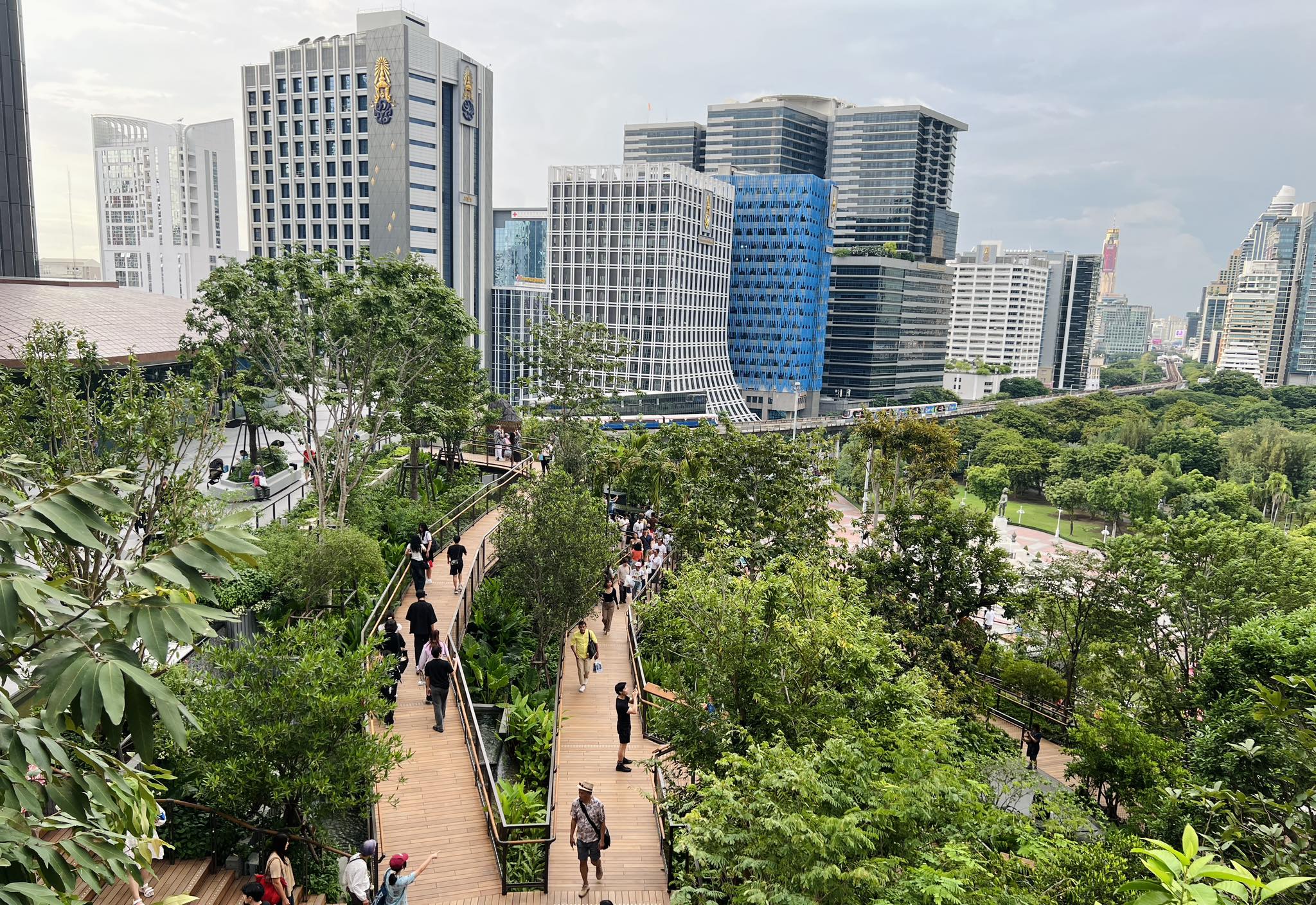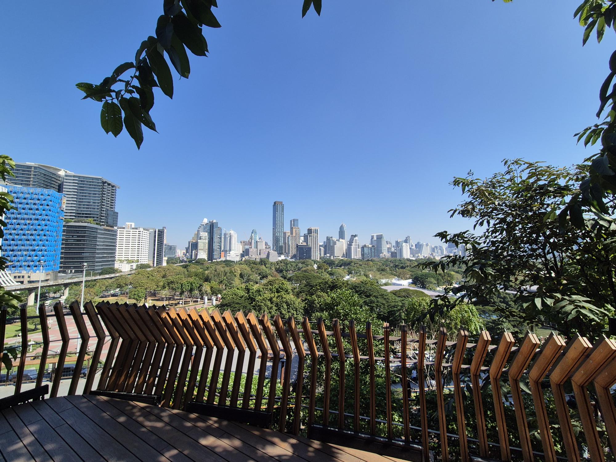 In crowded Bangkok, where smog stings the eyes and throats, there are beautiful green areas that have many purposes, serving residents and turists' relaxation.