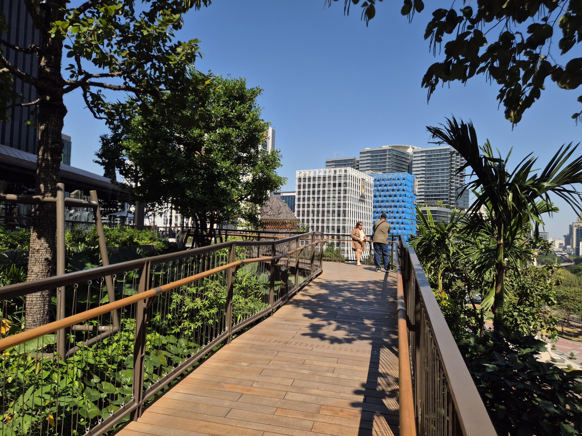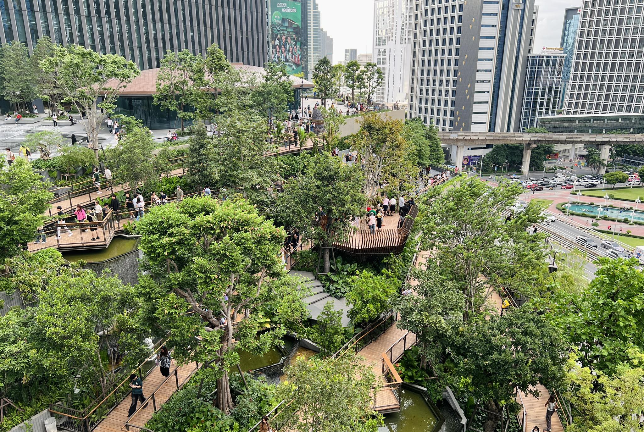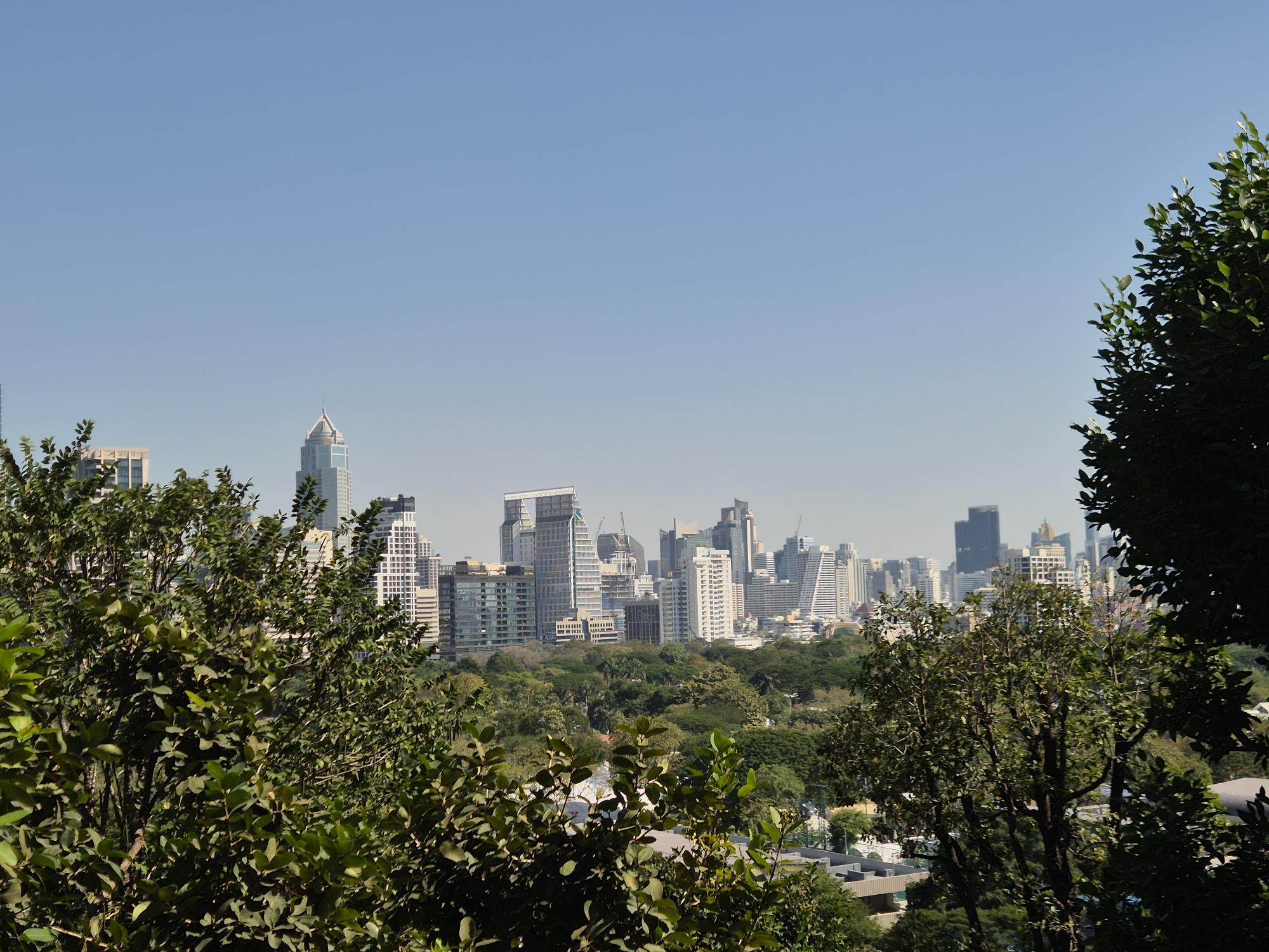 In crowded Bangkok, where smog stings the eyes and throats, there are beautiful green areas that have many purposes, serving residents and turists' relaxation.