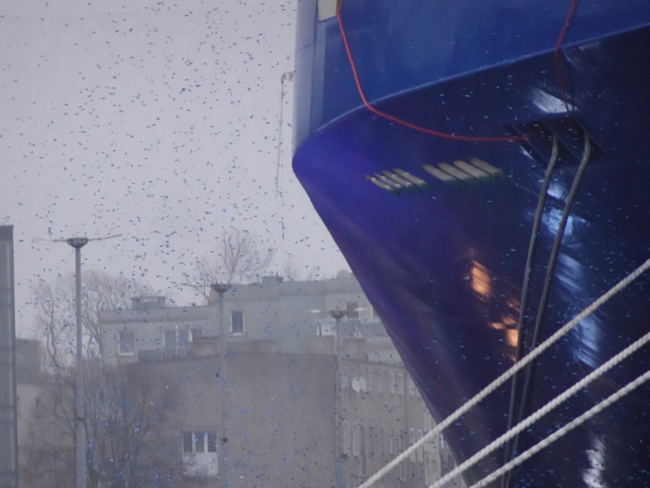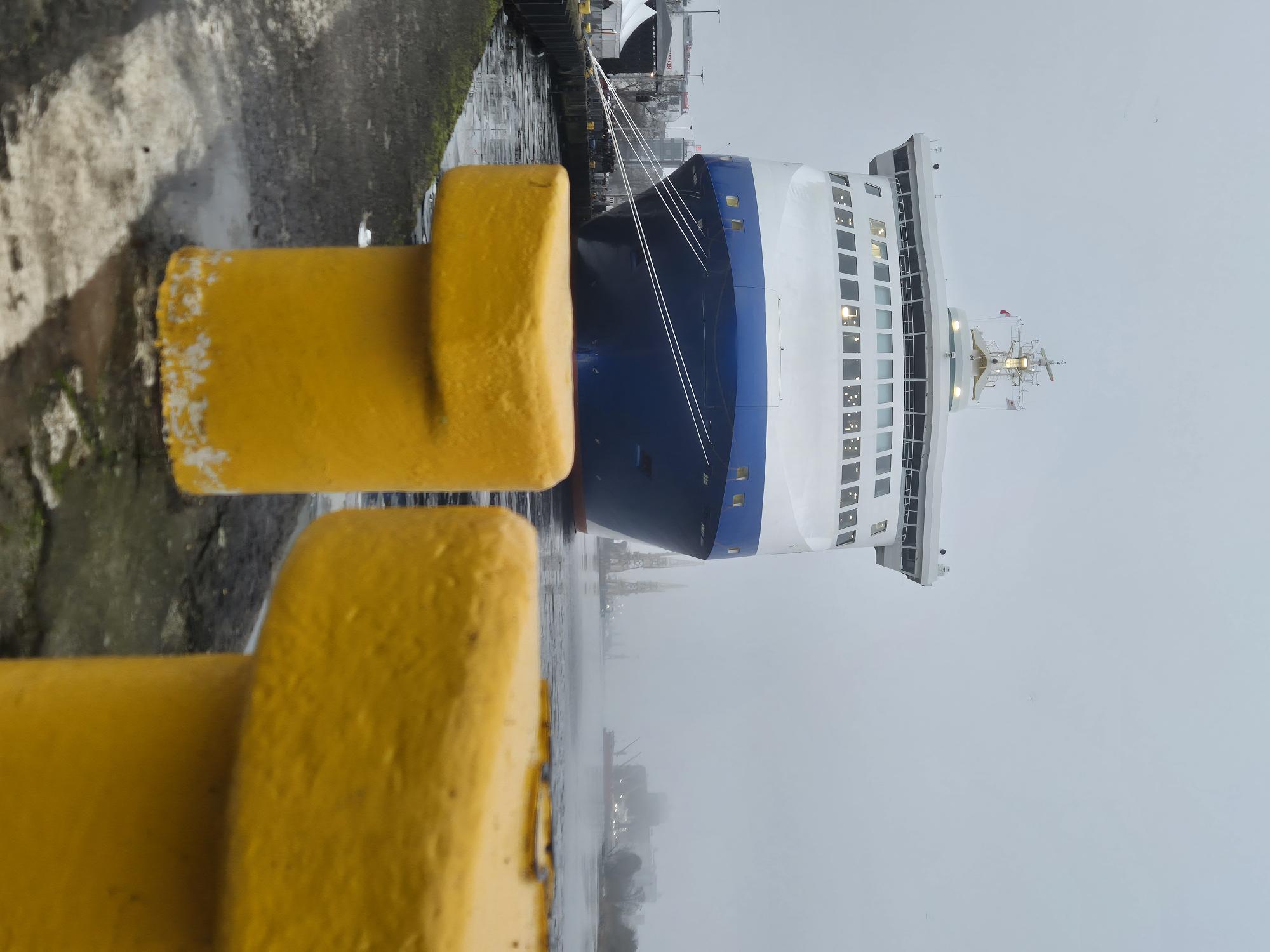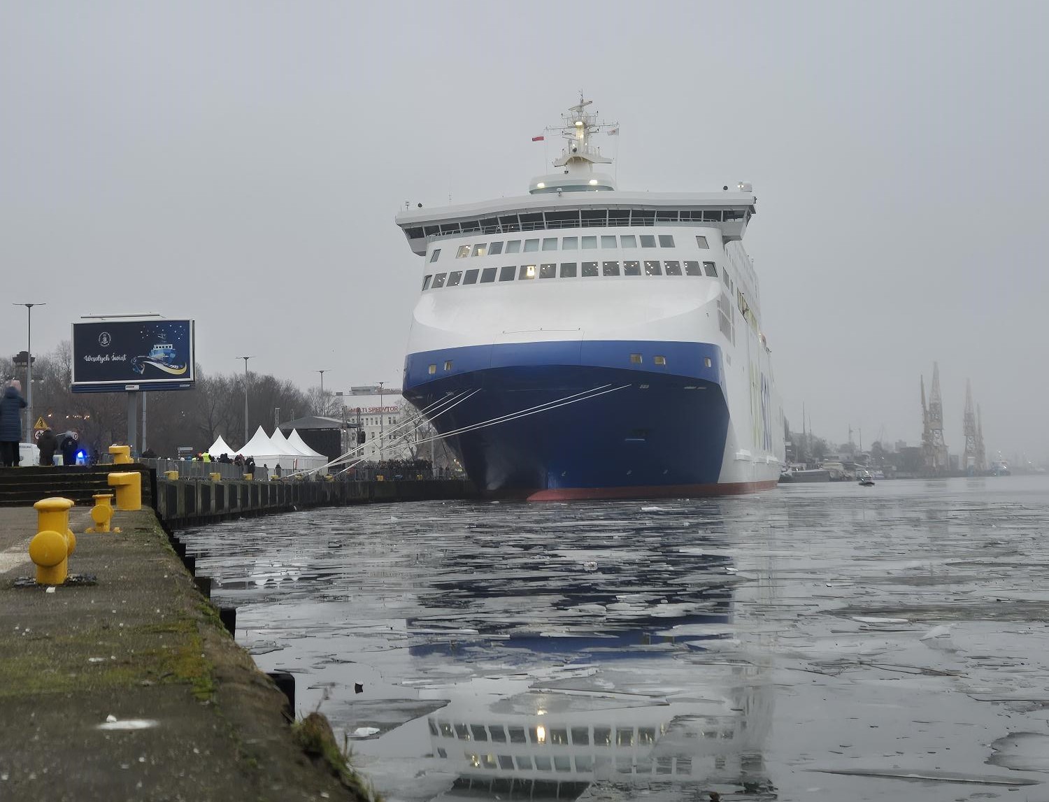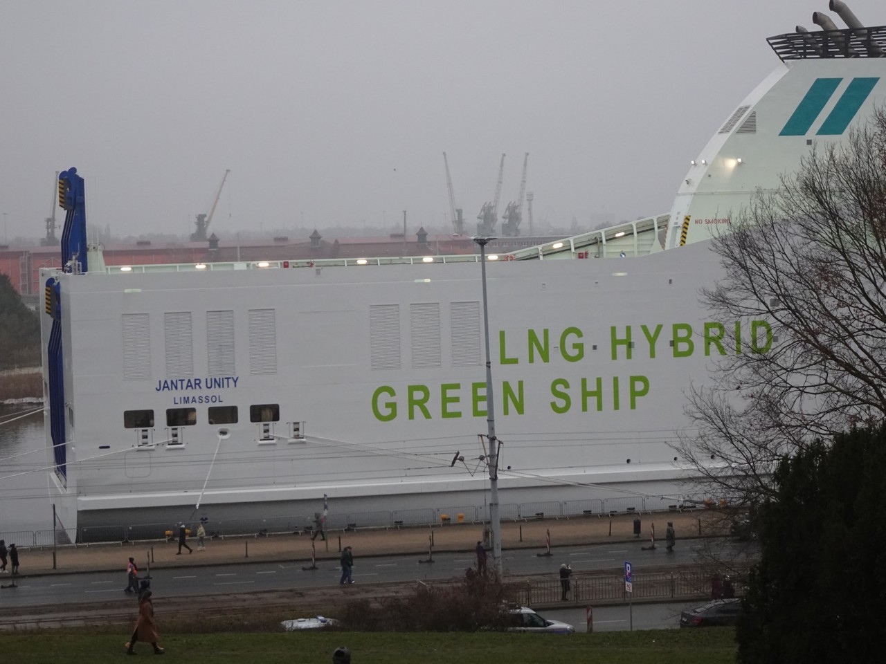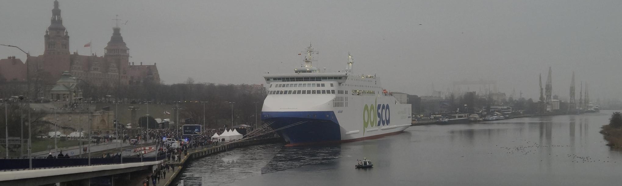 to watch the approach of the M/F JANTAR to the quay at Wały Chrobrego