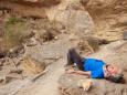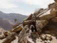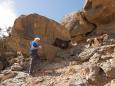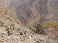 We are in the range Jemel Shams. We trek down one of the walls of the canyon to the half its height, following the so-called "Balcony".
