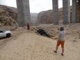 Visiting the surroundings of Sur we were drivin along a big overpass on one of the nearby wadis. Our excellent drivers of the Toyota and Jeep (Wanda and Paul) decided to go under the viaduct and drive along the wadi.