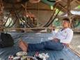After exploring the whole hill, we had lunch in a typical Khmer scenery, i.e. on a straw-covered platform where hammocks are hung, the ordered dishes are served.
