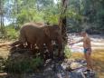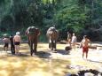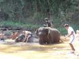 Both subgroups met over the river, near the waterfall, where the elephants are brought to the bath.