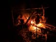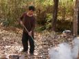 With those machetes they prepare (all the time in the movement) dishes necessary for cooking. All of bamboo! The only "permanent" element is an aluminum pot for cooking rice and water.
