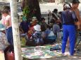 Cambodians come here on all days off and spread out on rented mats and chairs along the beach on the sidewalk, in the shade of the trees.