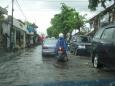 Unfortunately, after the night of pouring rain, it kept on raining the whole morning. We took a taxi to go for lunch to Seminyak which was about 5 km away. It took us the whole hour. The photos should explain why.